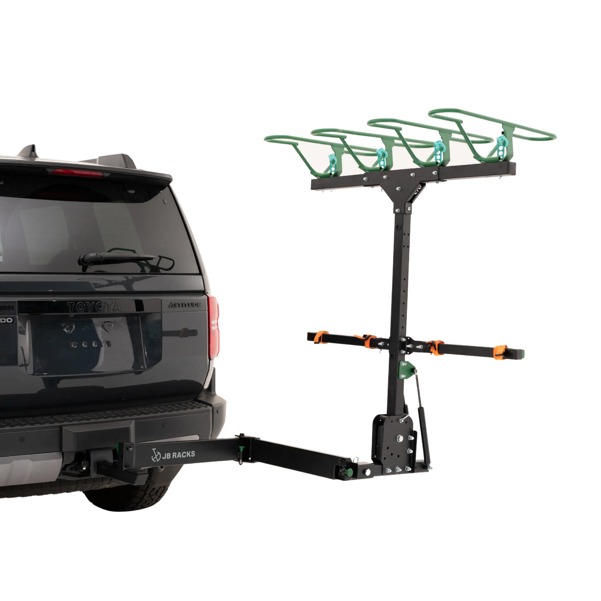Built tough to handle adventure-ready loads, the JB Racks Swing Arm has a maximum load capacity of 120 kg, including rack and gear, perfect for serious bike transport setups. Compatible with standard 50 mm (2") hitch receivers.