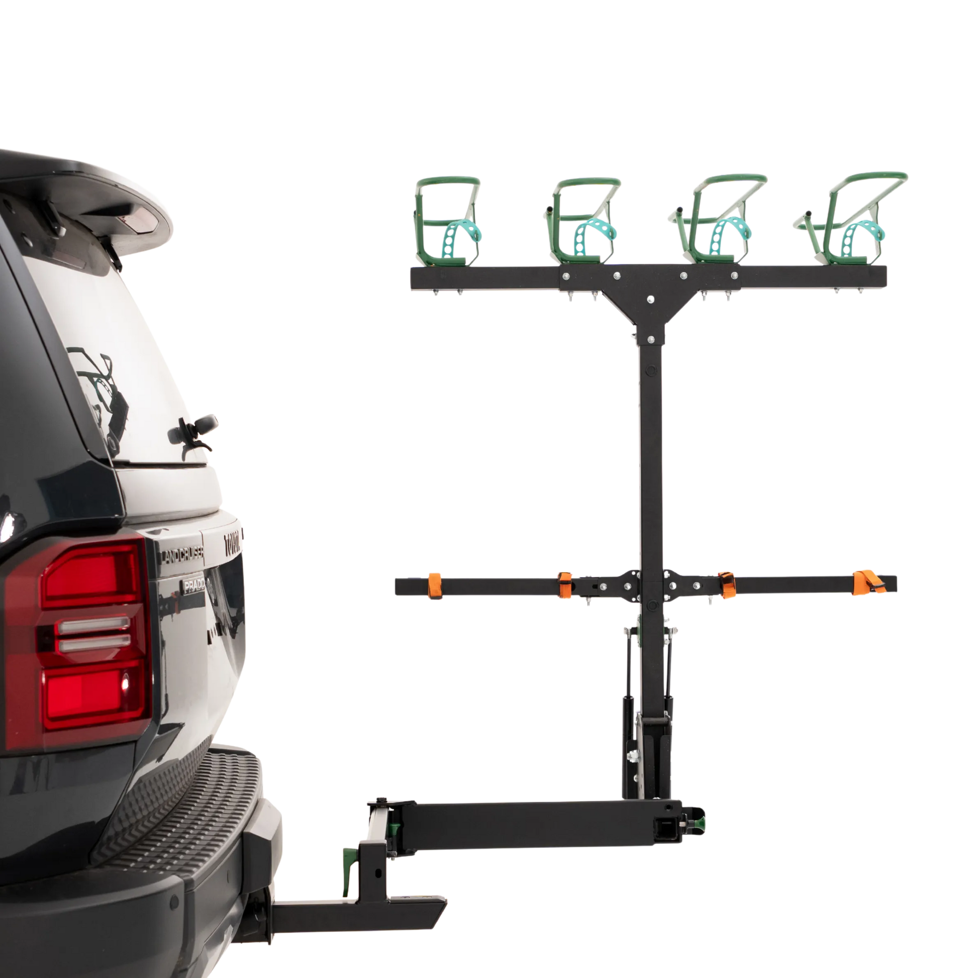 Designed with durability and ease in mind, the Swing Arm opens 90 degrees with a secure release mechanism, letting you swing the entire rack system out of the way effortlessly. A robust safety latch ensures the arm stays securely locked during transit, providing peace of mind on and off the road.